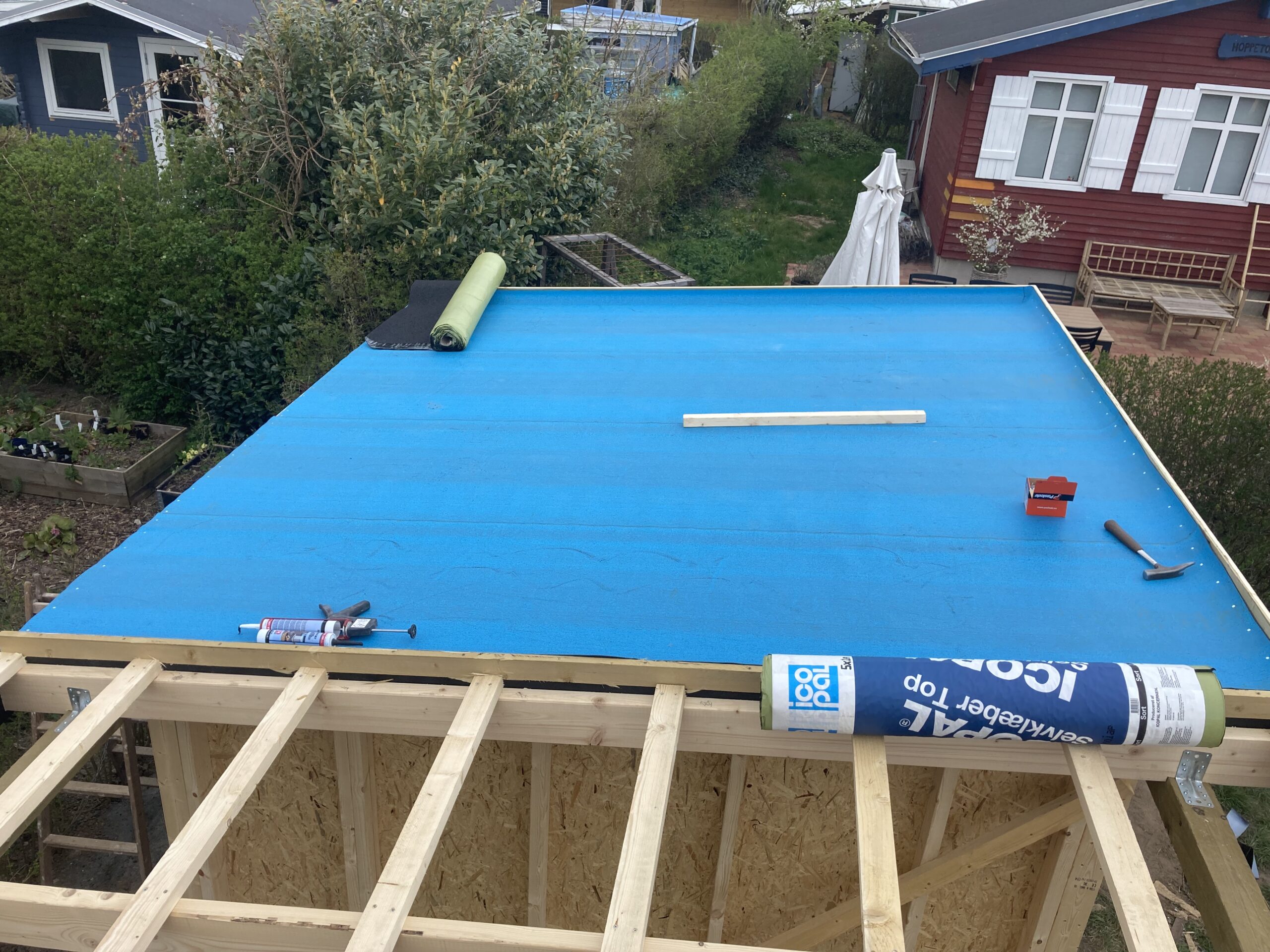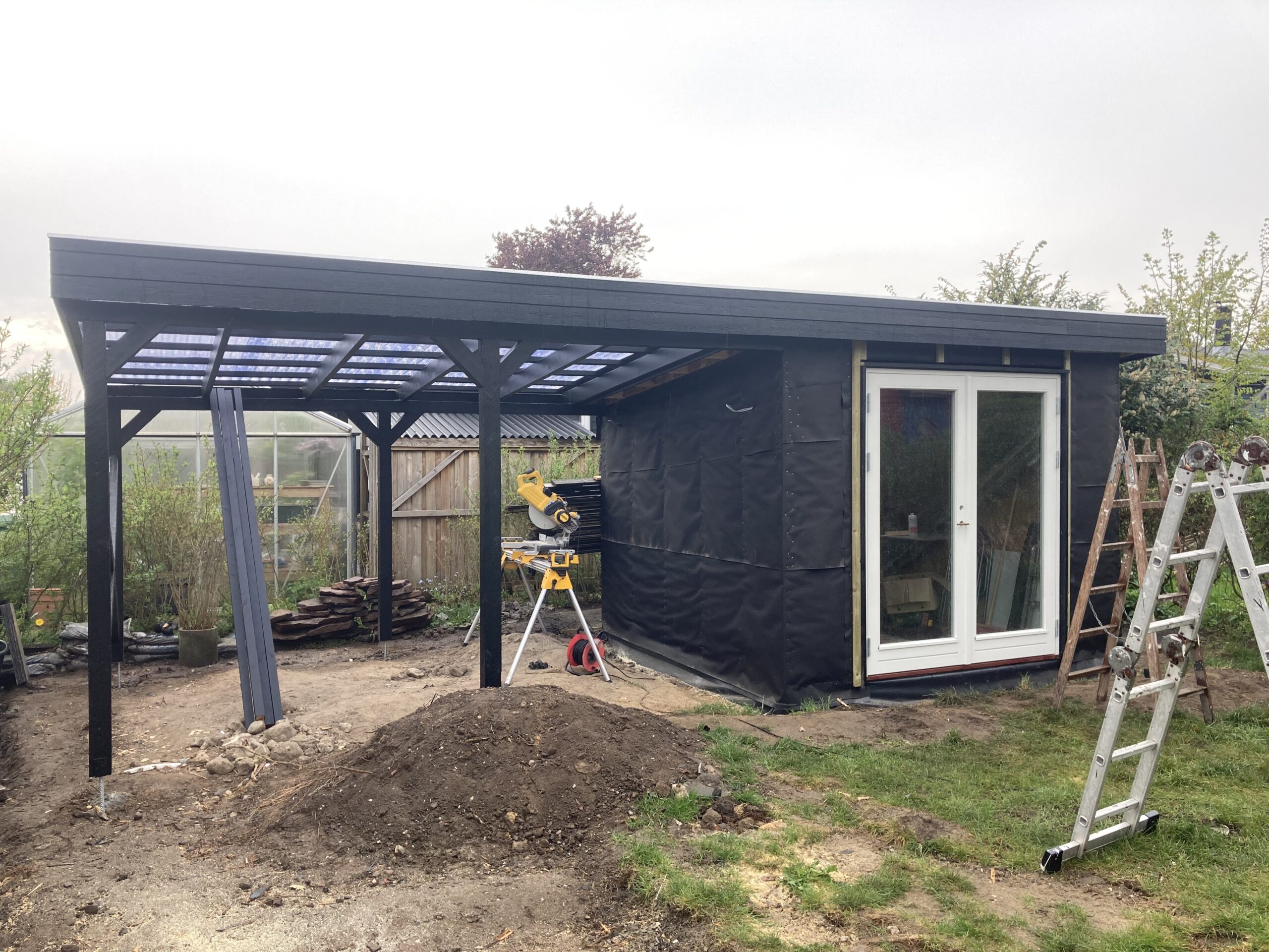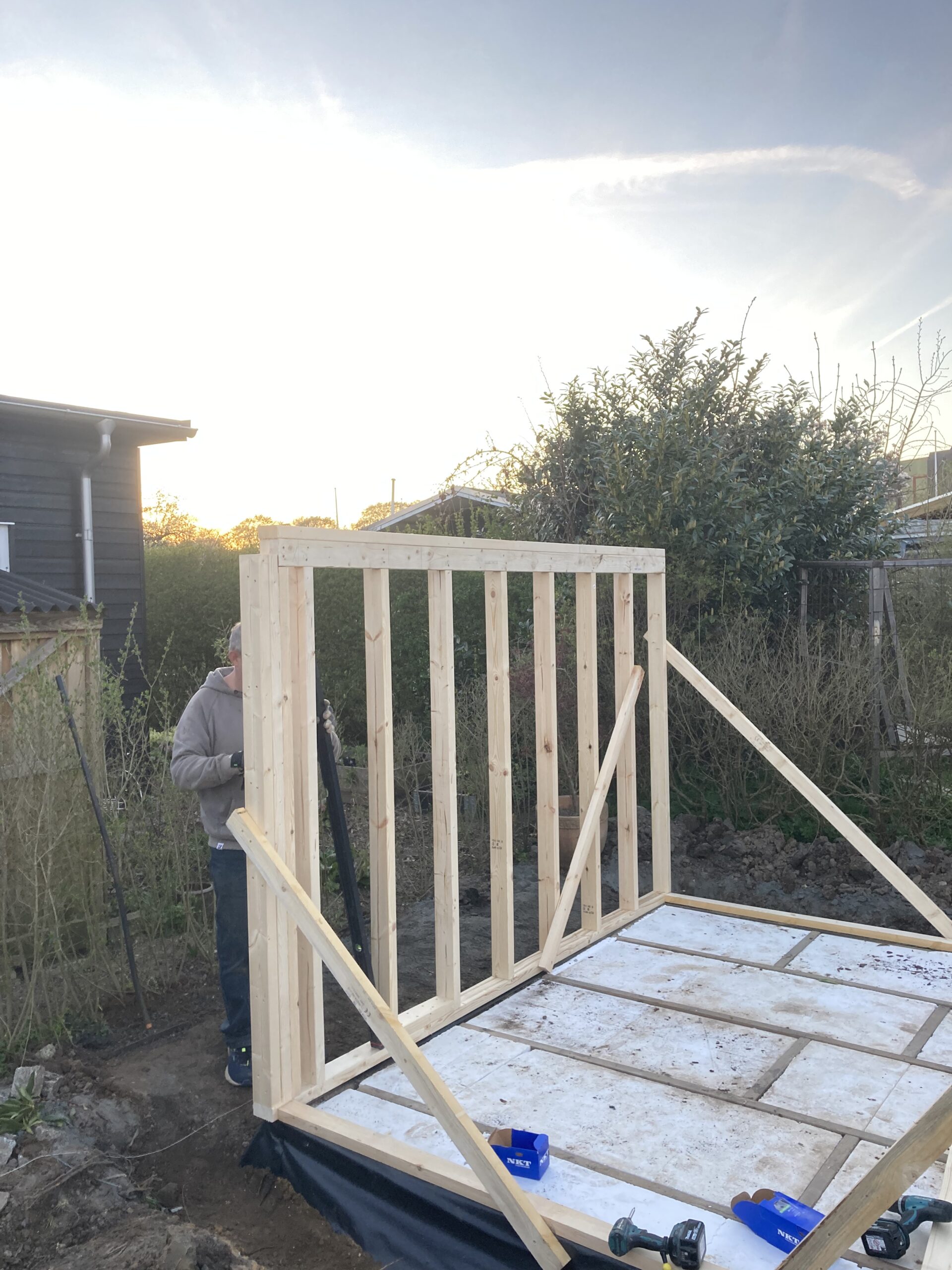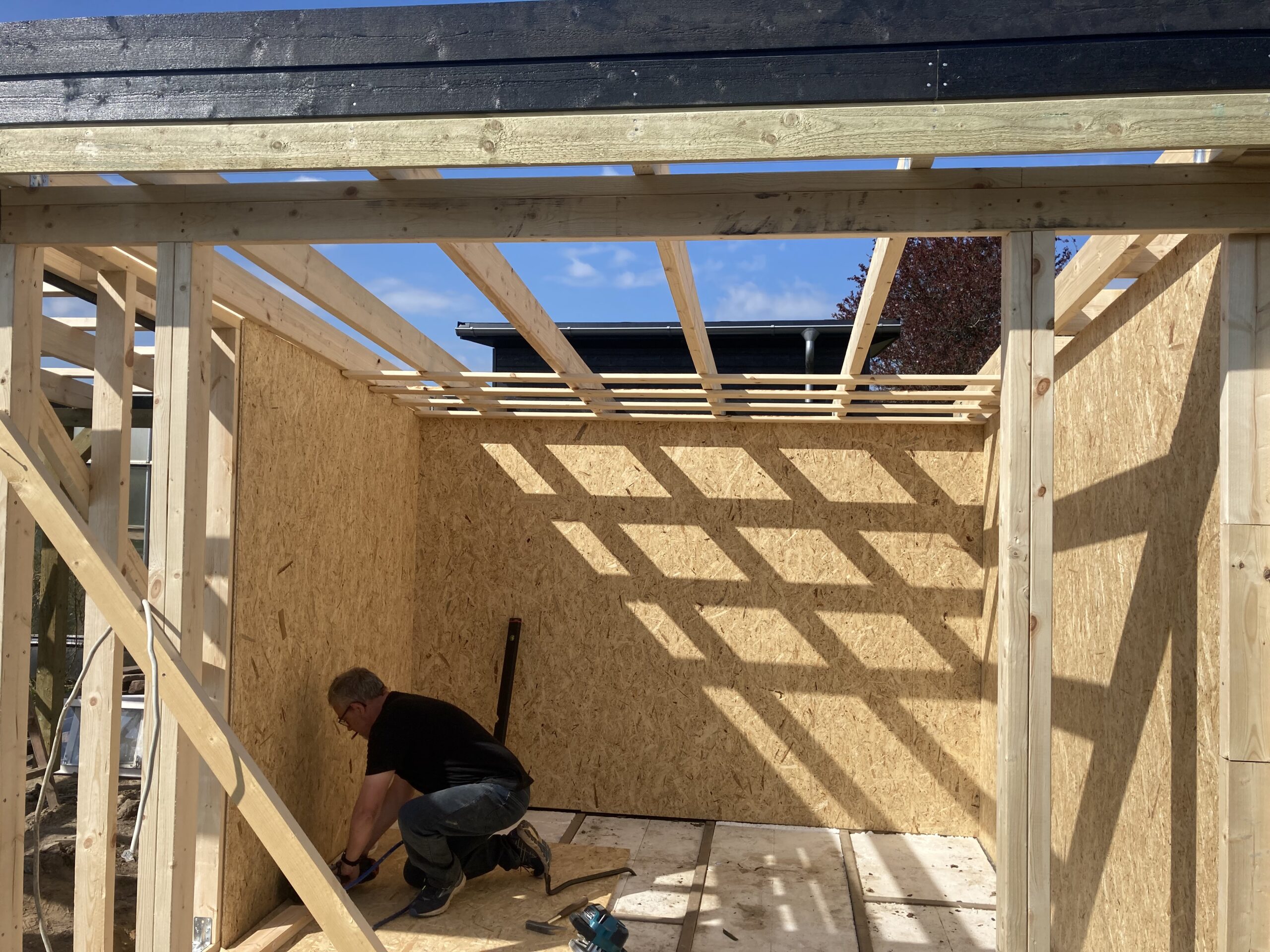 Det gamle skur i haven kunne ikke konverteres til et anneks, så der måtte lidt nyt træ til. Det var vist også meget godt, bundrammen var ikke helt frisk længere. Det blev til et fint lille anneks med plads til overnattende gæster og en lækker overdækket terrasse. Bygget i samme materialer som kolonihavehuset, så der ligesom er en rød tråd i hele projektet. Bygherre var selv på pladsen til at give en hjælpende hånd med.