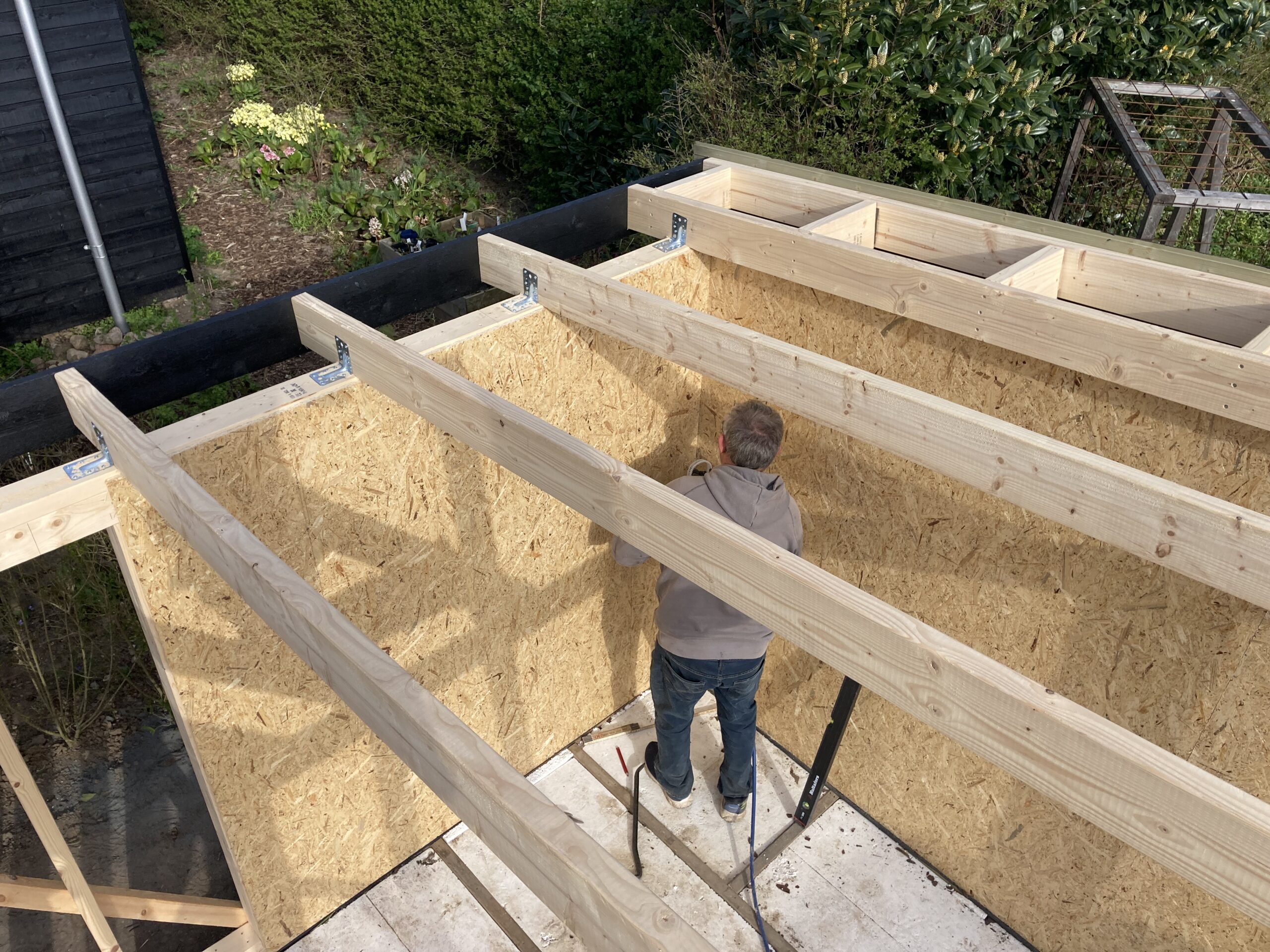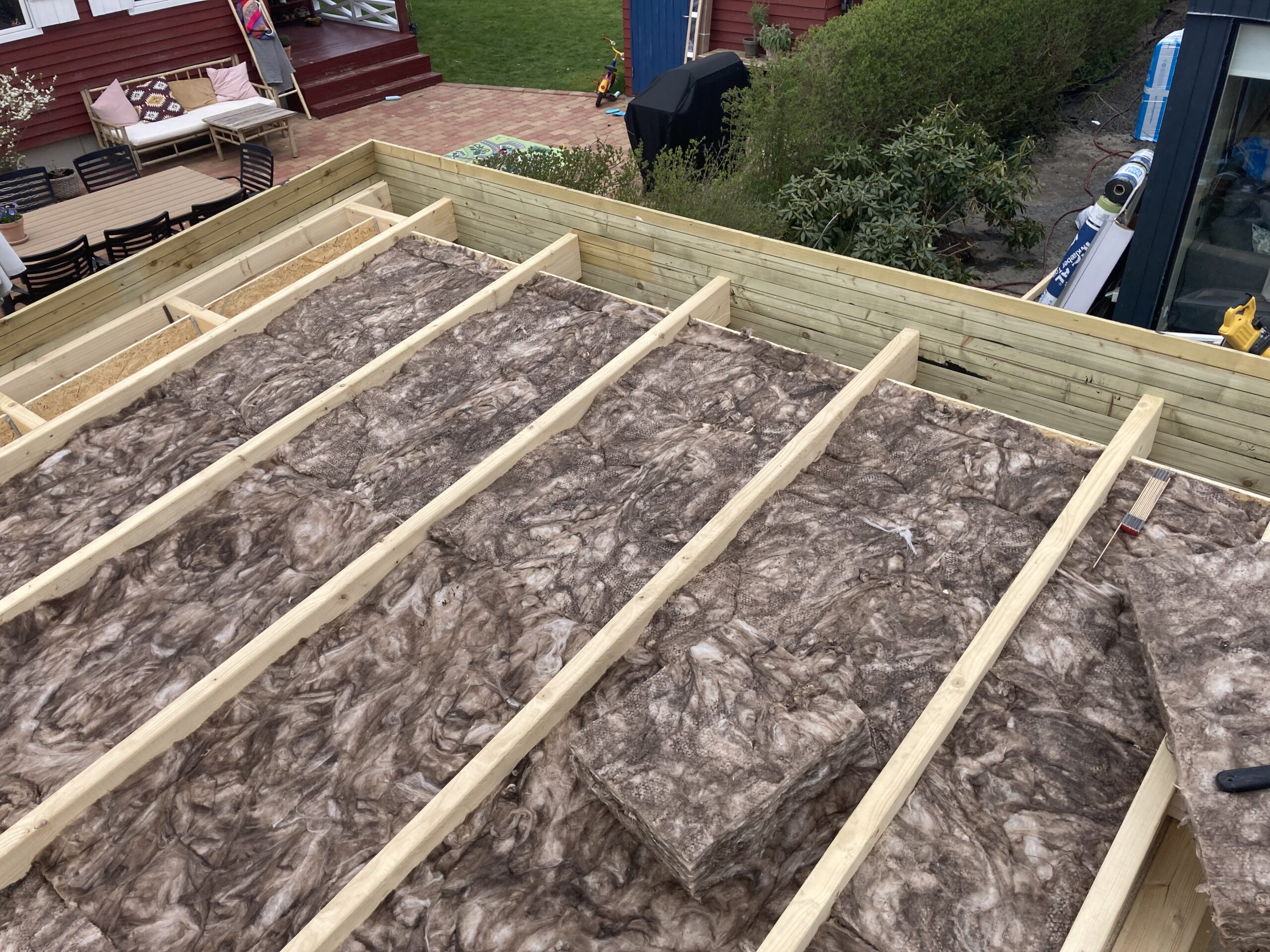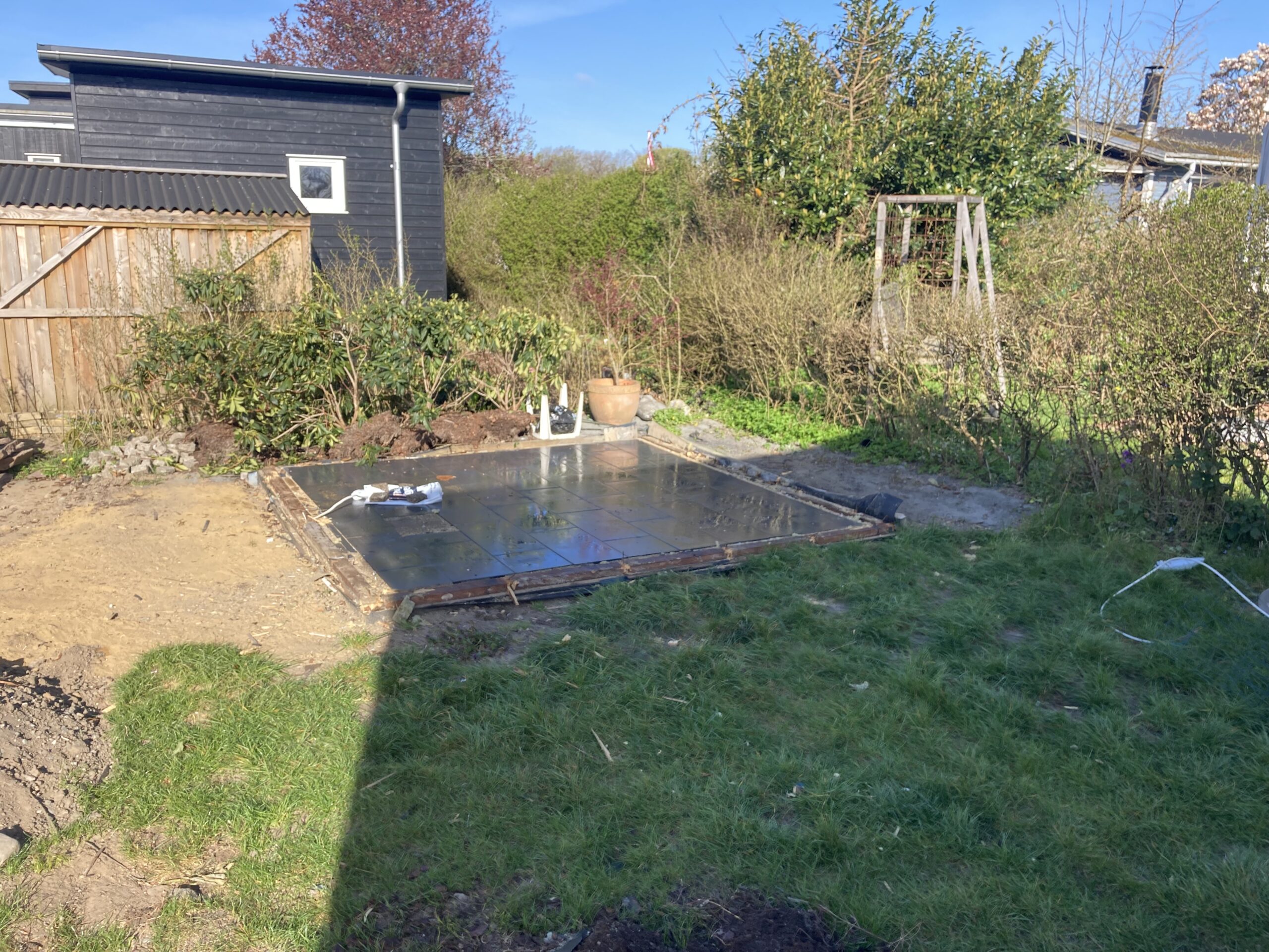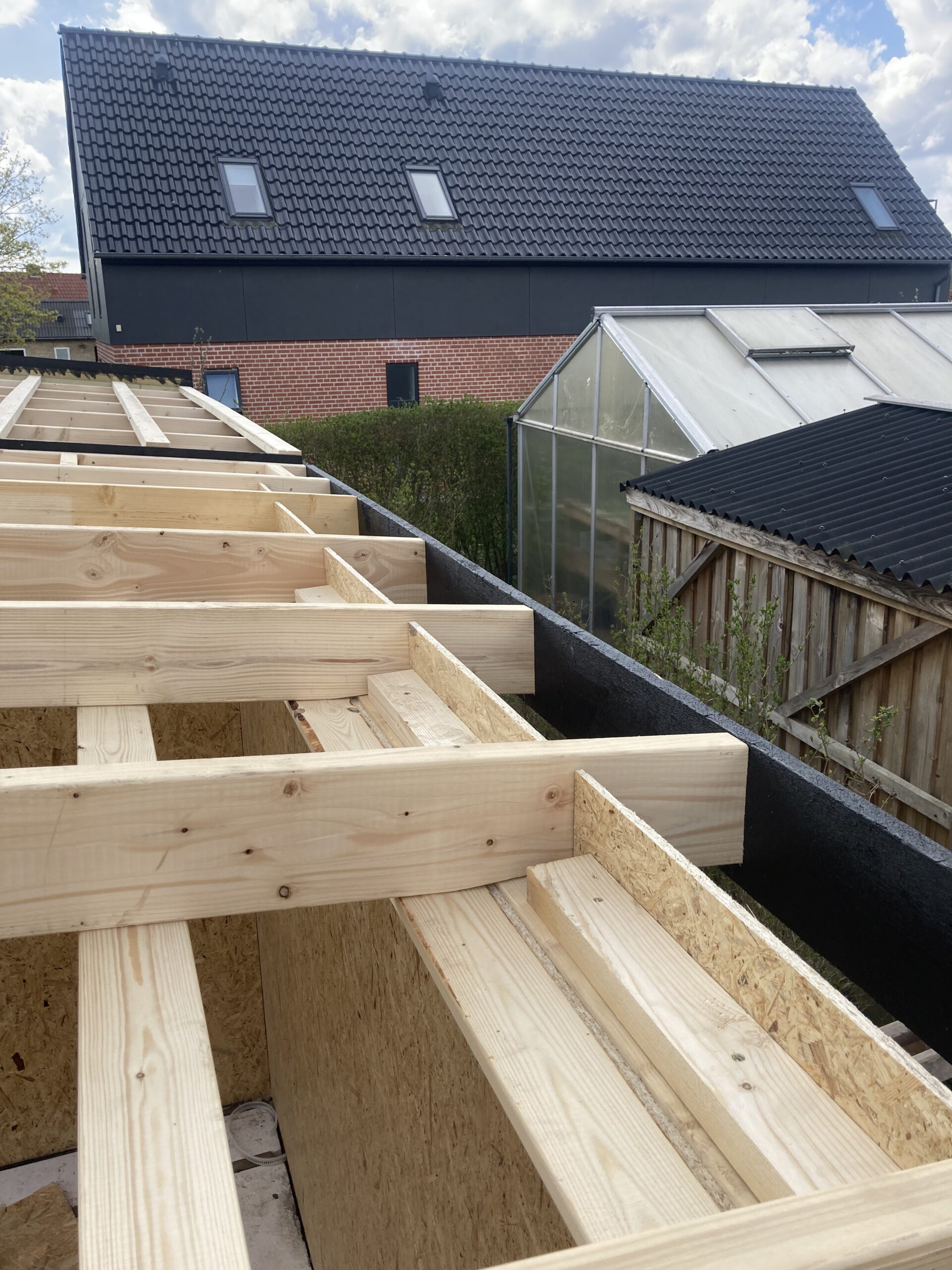 Det gamle skur i haven kunne ikke konverteres til et anneks, så der måtte lidt nyt træ til. Det var vist også meget godt, bundrammen var ikke helt frisk længere. Det blev til et fint lille anneks med plads til overnattende gæster og en lækker overdækket terrasse. Bygget i samme materialer som kolonihavehuset, så der ligesom er en rød tråd i hele projektet. Bygherre var selv på pladsen til at give en hjælpende hånd med.