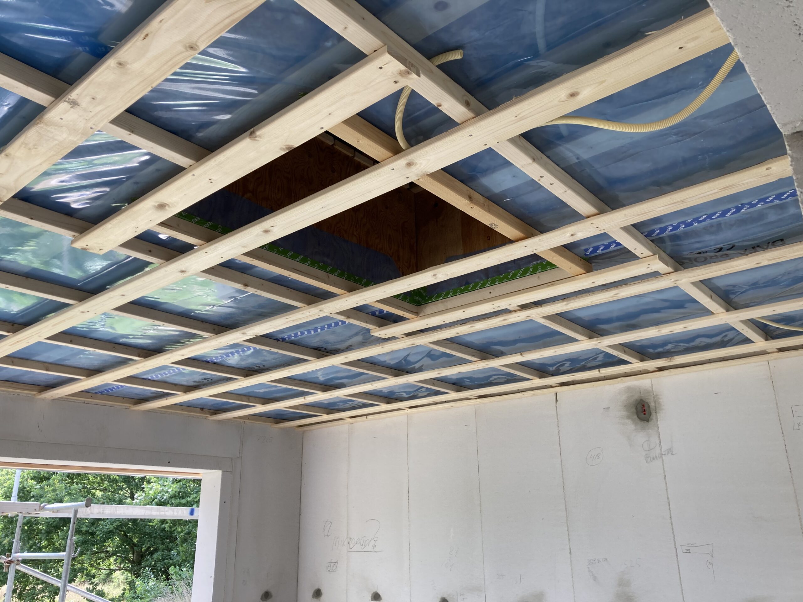 Næste step i Ølgod var at få styr på underbeklædningen og stern, og få stern monteret, selve underbeklædningen skal vente til Sørensen og Flytkjær er færdig med at mure ydere væggene op. Der kom også dampspærre op indvendig, inden at elektrikeren og VVS’eren begyndte at føre kabler og rør igennem.