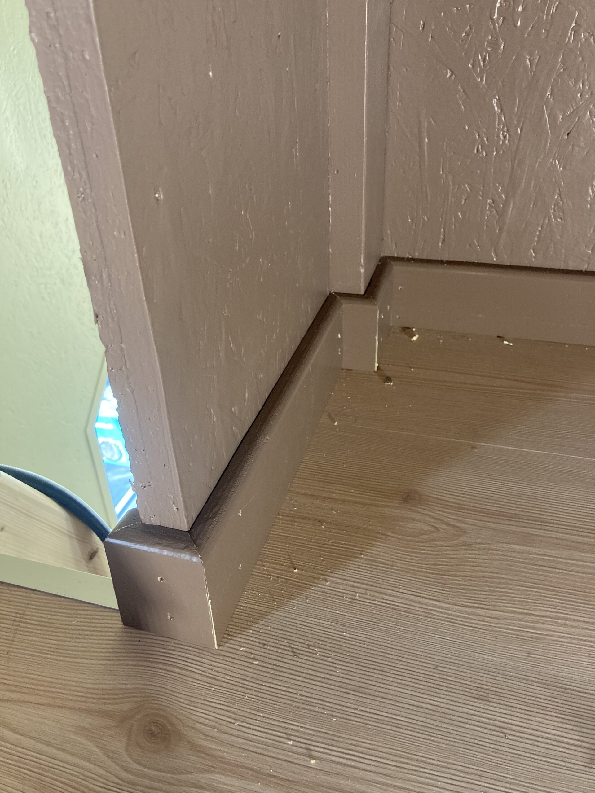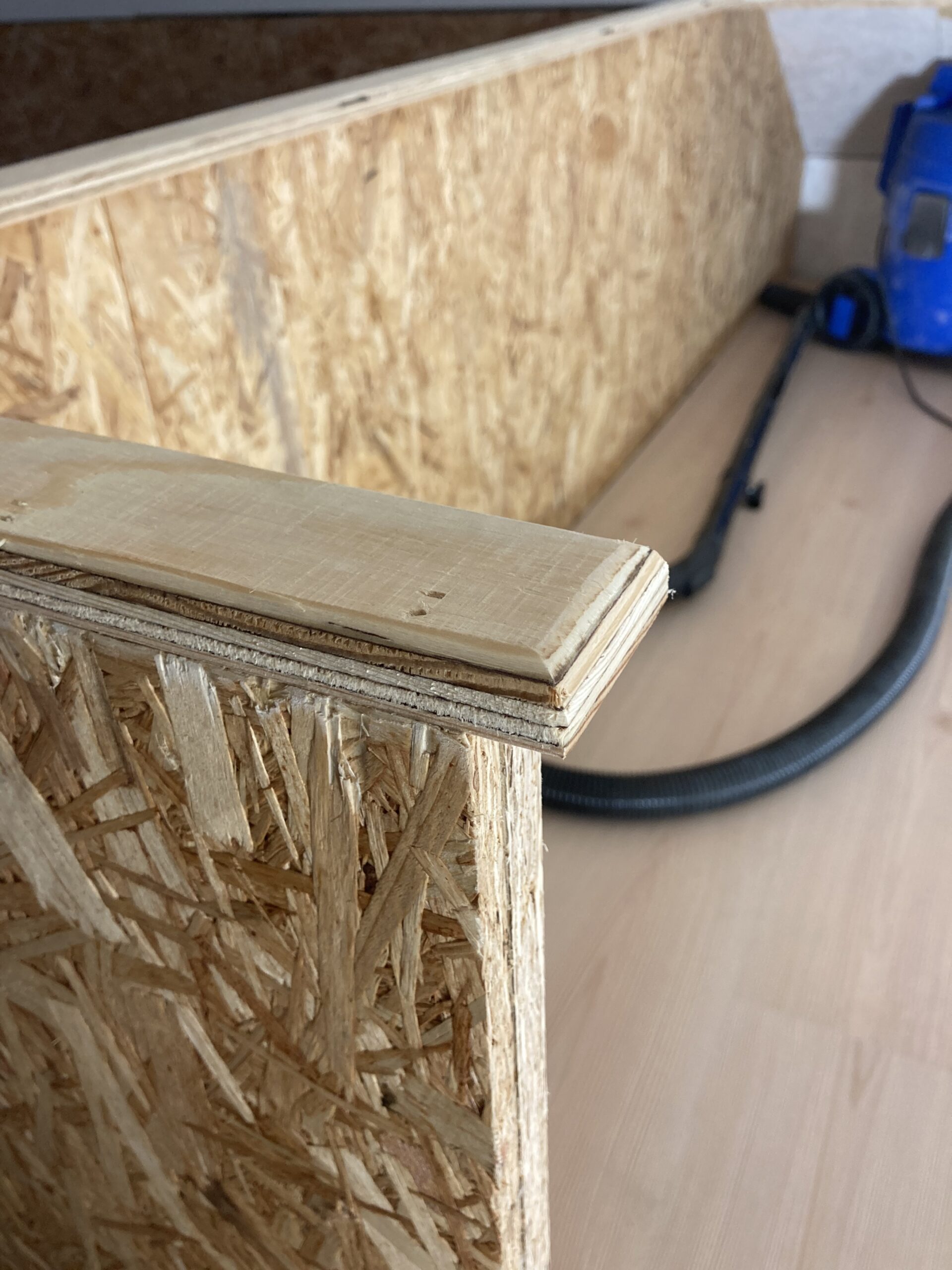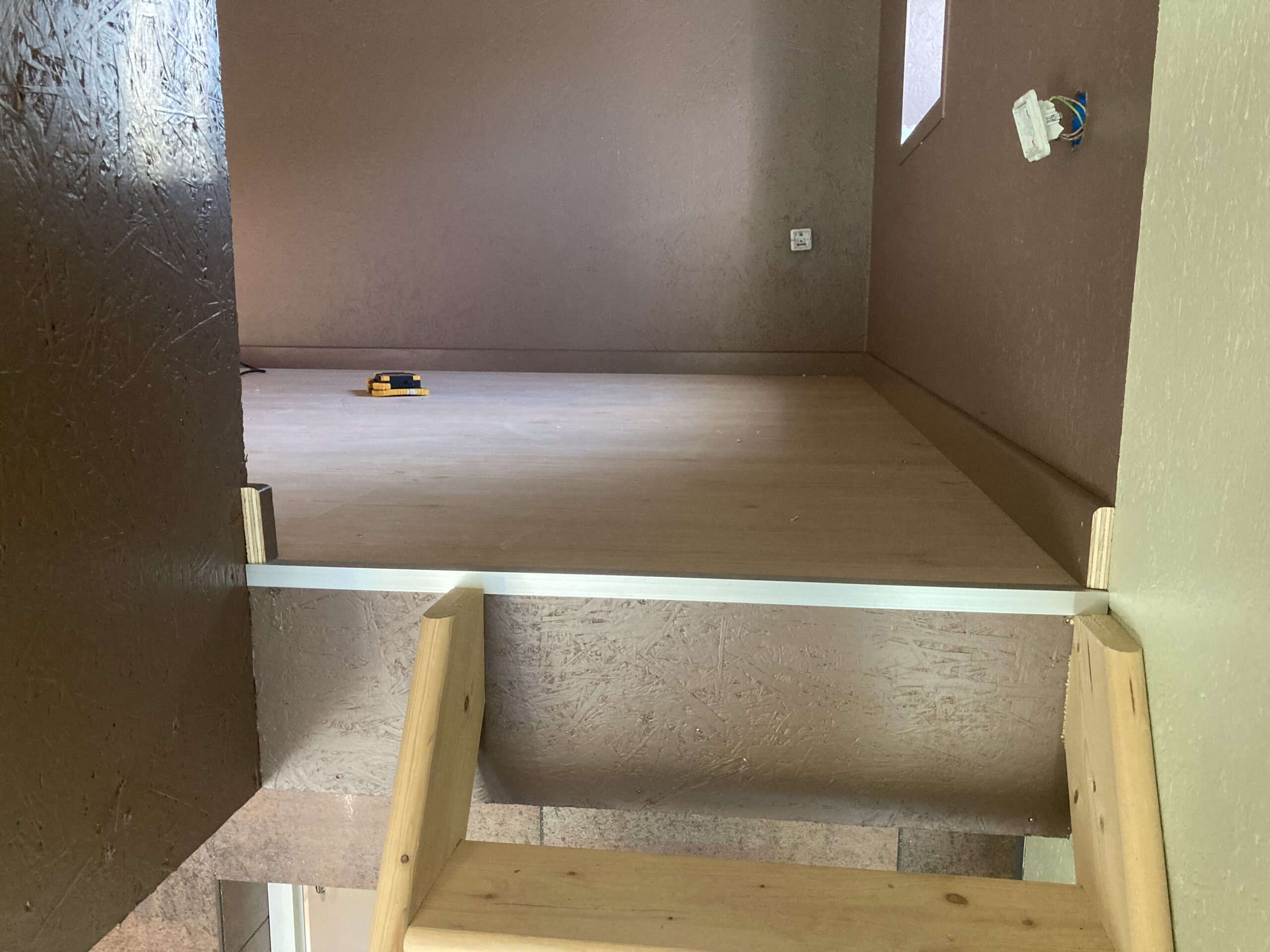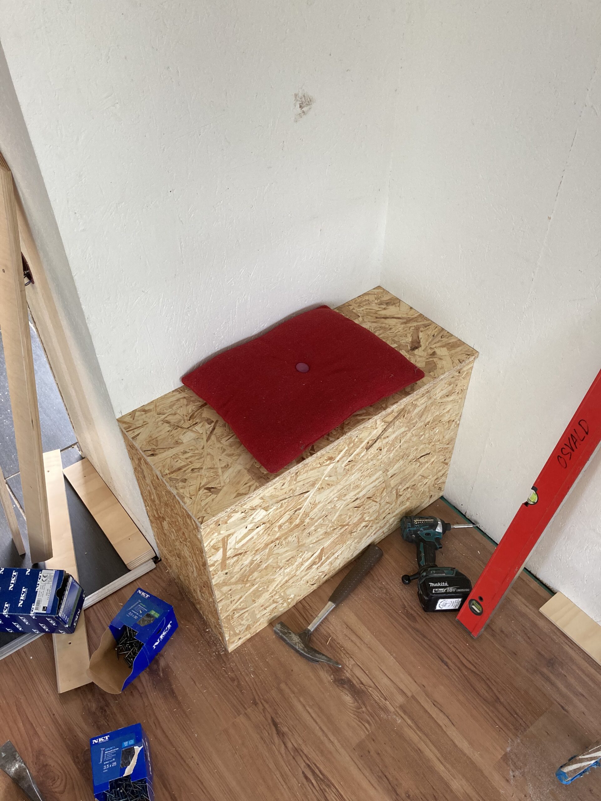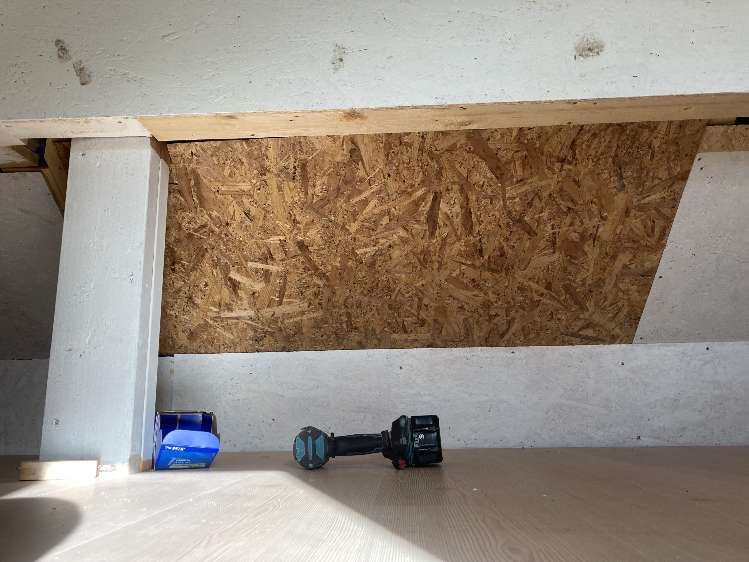 Lidt små rettelser for lokal kunde der havde købt et kolonihavehus i Aarhus. Rettelser af diverse OSB-plader, montage af fodliste i hems, skyggelister overalt, skjuler til router m.m. og lidt alu-lister til at afslutte diverse hjørner.