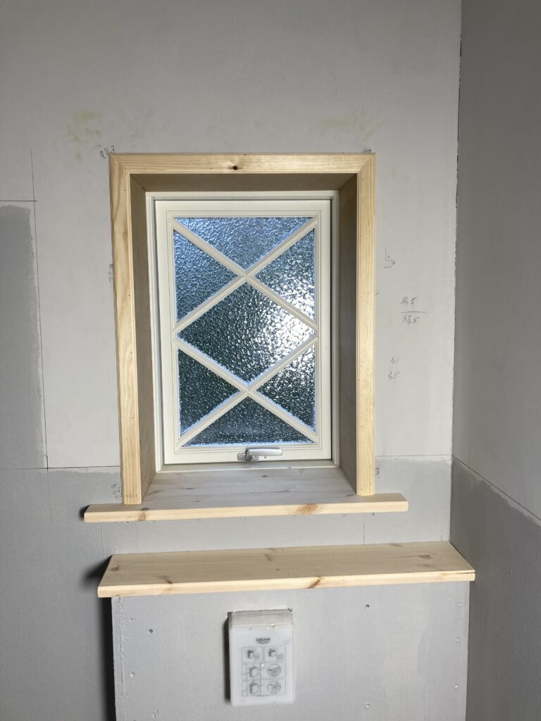 Ved montage af vindue samt lysning var det nødvendigt at fremstille listerne selv, da de ikke kunne købes.